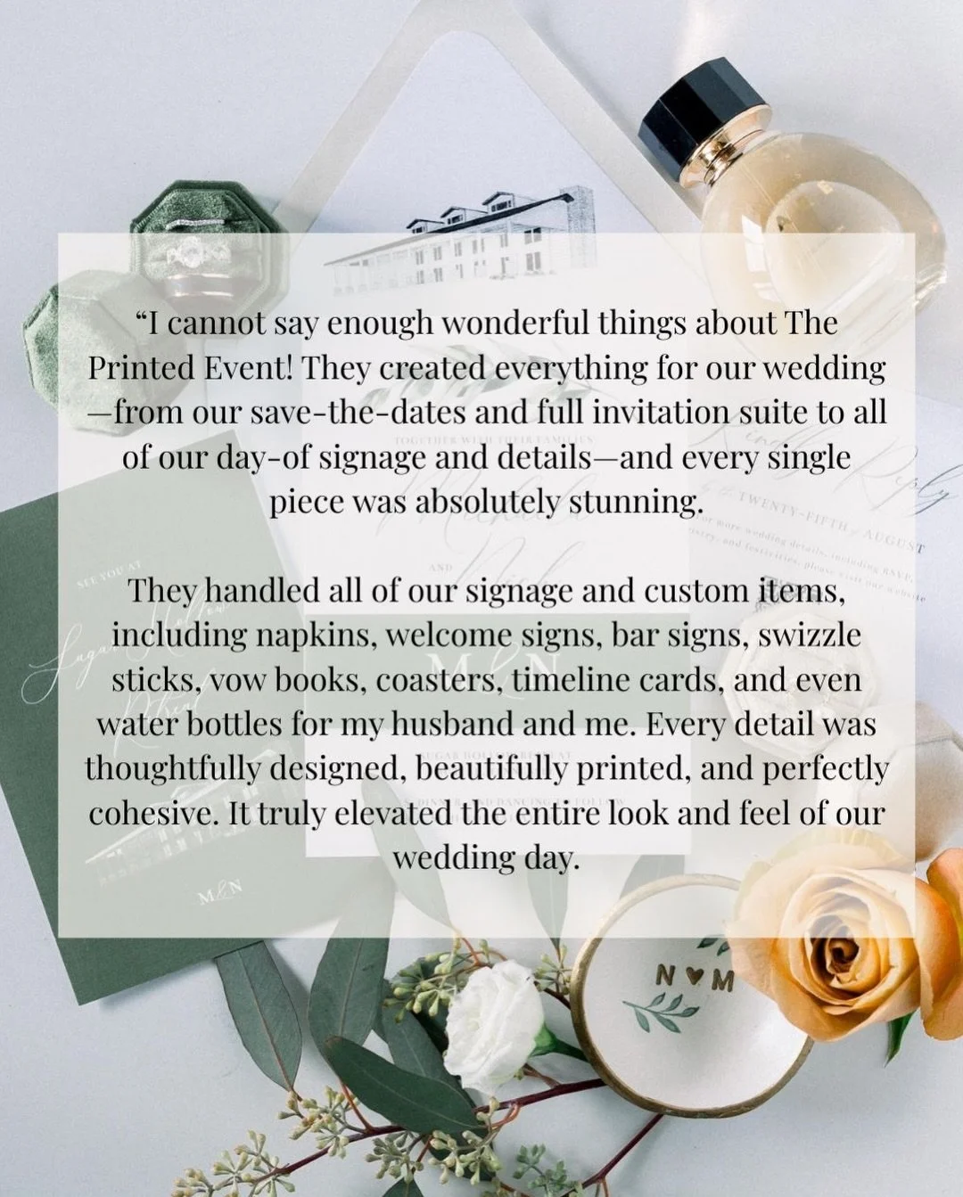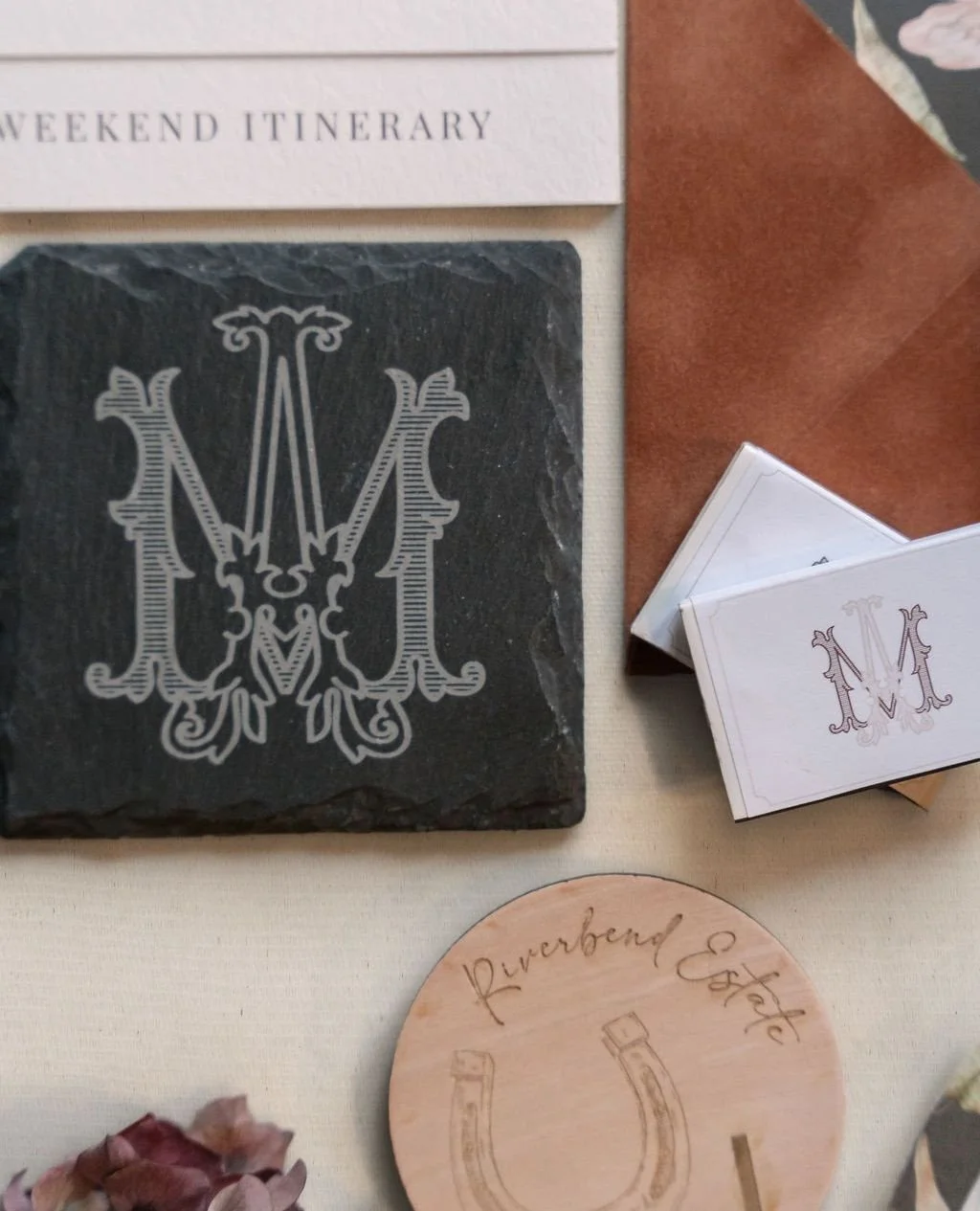 Curate an experience for your cherished guests that is as unique as your love story! Starting with the creation of a theme, our team will thoughtfully organize and seamlessly guide you through the design process, resulting in unique, cohesive print and decor for your event.