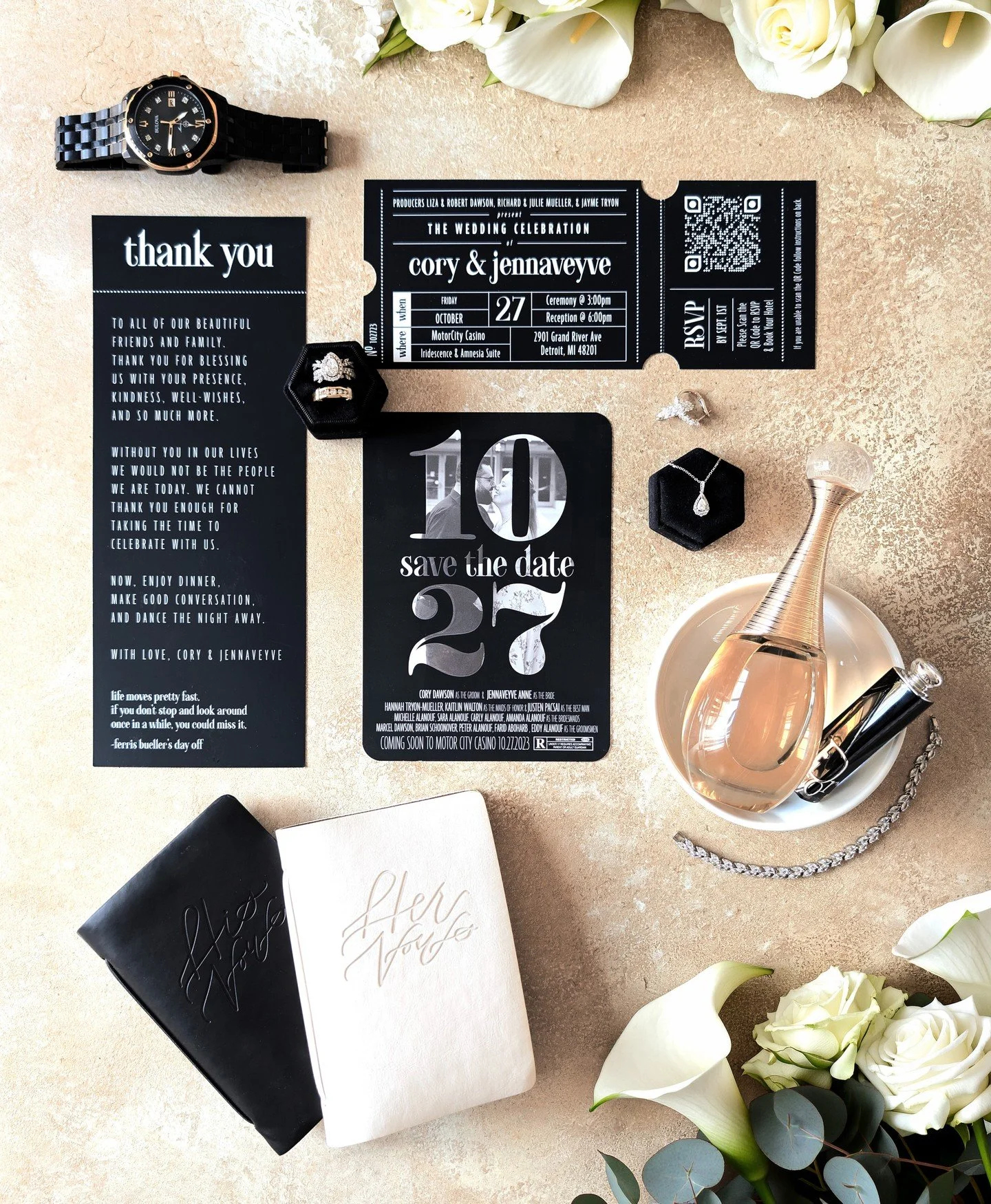 Through careful planning, your theme begins with gorgeous paper prints (save the dates and invitation suites), continues through to the big day with personalized decor and matching accessories, and finishes with thoughtful thank you gifts.