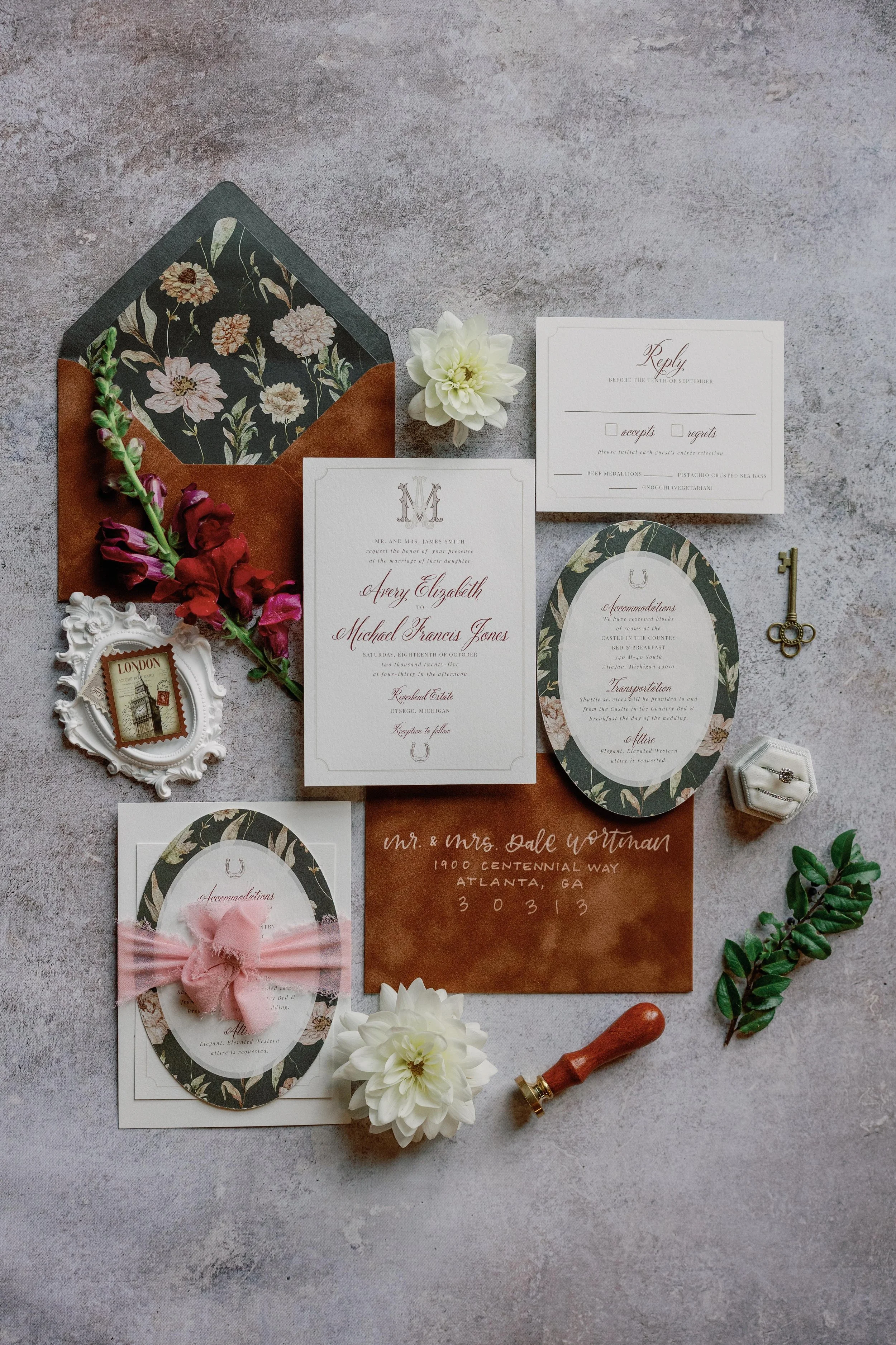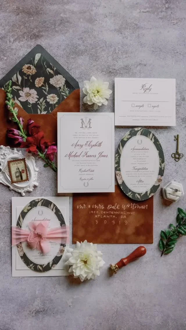 Curate an experience for your cherished guests that is as unique as your love story! Starting with the creation of a theme, our team will thoughtfully organize and seamlessly guide you through the design process, resulting in unique, cohesive print and decor for your event.