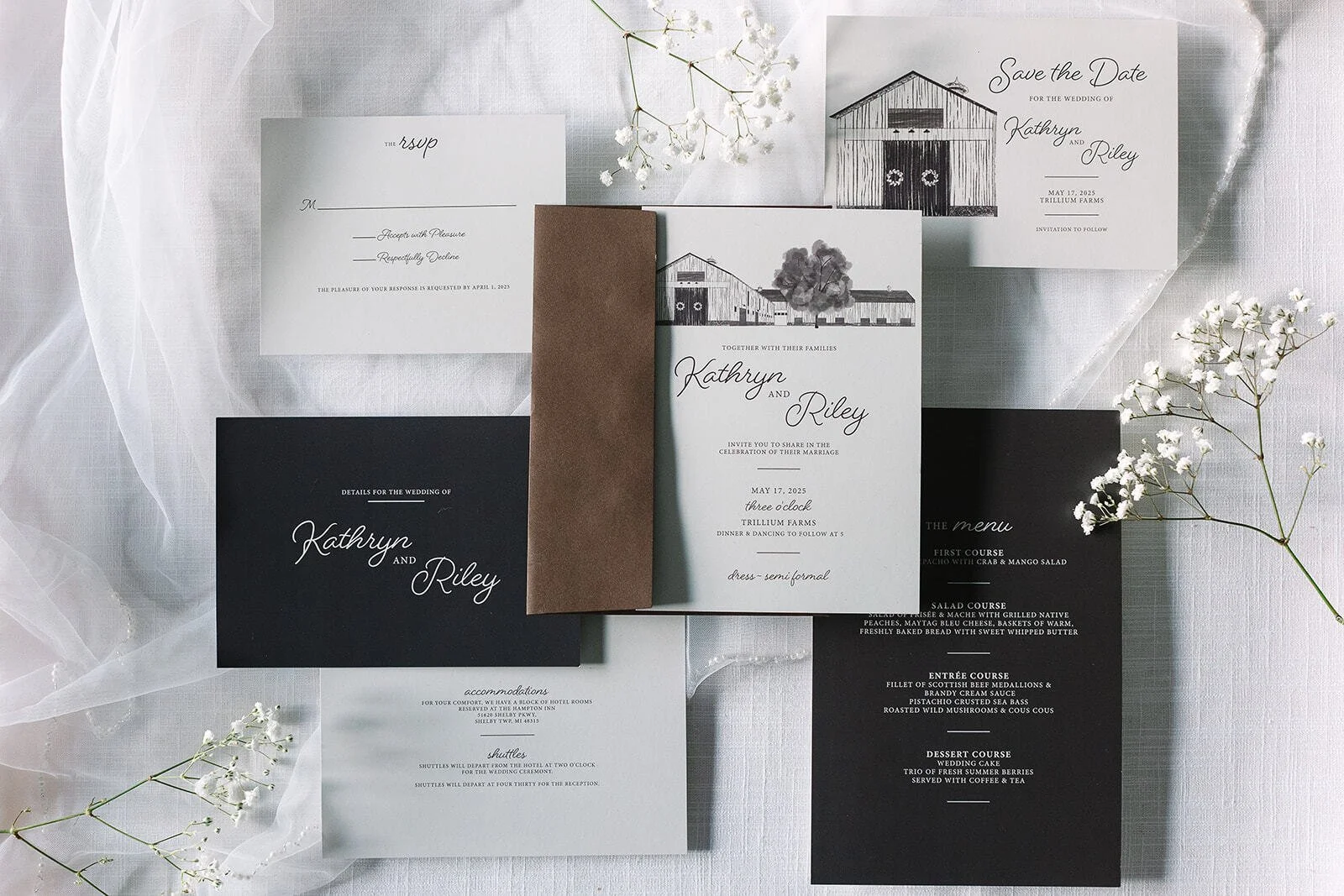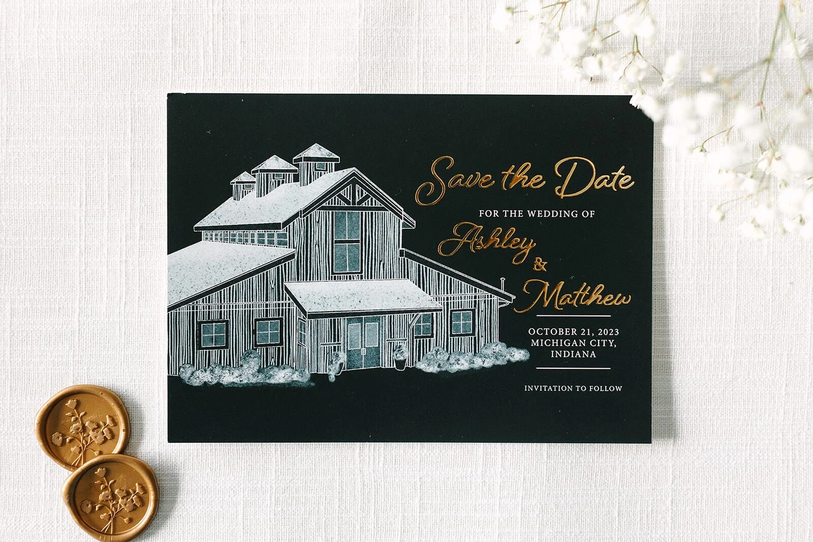 We custom designed them and they were exactly what we imagined. They were super easy to work with and helpful during the whole process! Thanks for bringing our save the date and invitation ideas to life!